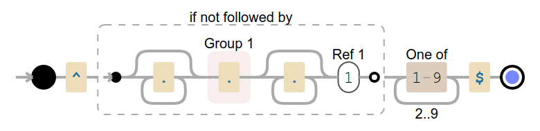 return bool(re.match(validation, code)) and not(bool(re.match(verification, code)))Comparing two patterns: generating the shape