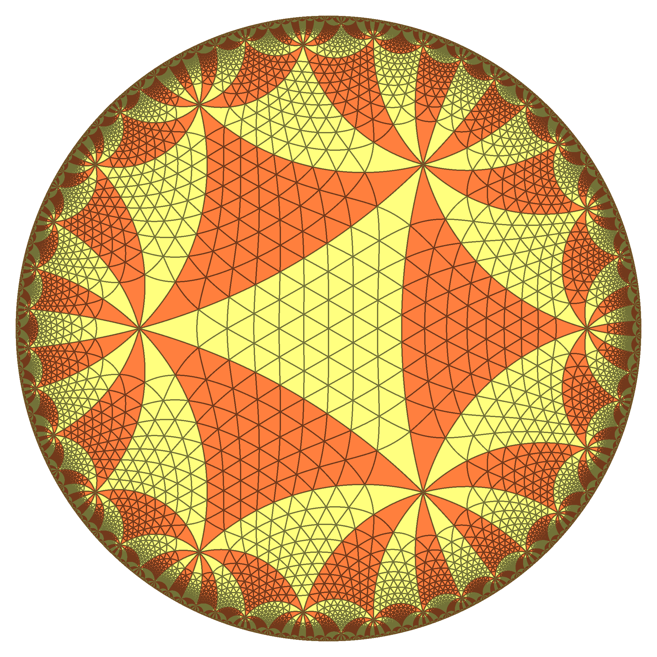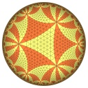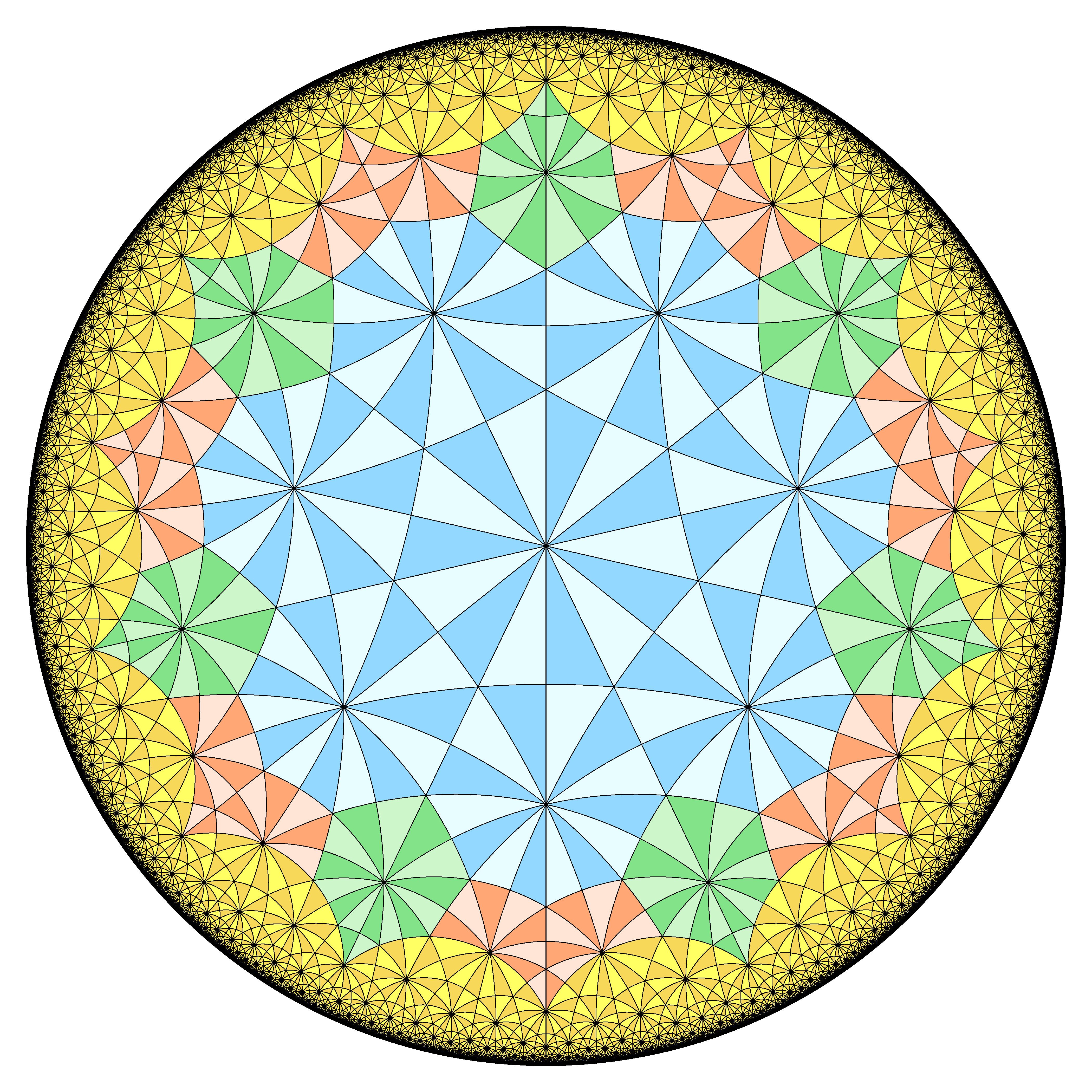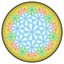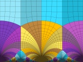 | A 12 colors tiling related to the usual subgroup of the modular group, highlighting the 3 cusps |