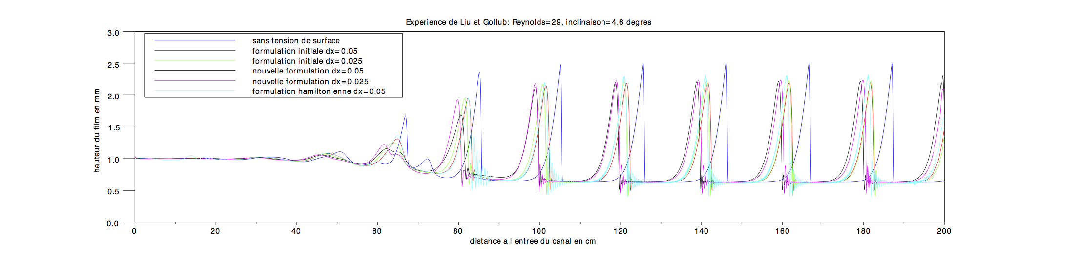 Schémas numériques pour les écoulements de films minces en présence de tension de surface: analyse de stabilité, simulations (méthodes de différence finies).