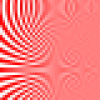 Ci-dessous une série illustrant l'amélioration progressive de qualité pour une fenêtre de 40 sur 40 pixels où l'on divise le pas de la grille de sur-échantillonnage par 2 à chaque fois (ce qui multiplie par 4 le nombre d'échantillons).